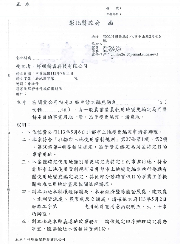 恭喜 祥順精密科技有限公司 變更編定完成(農地變建地)!!!
