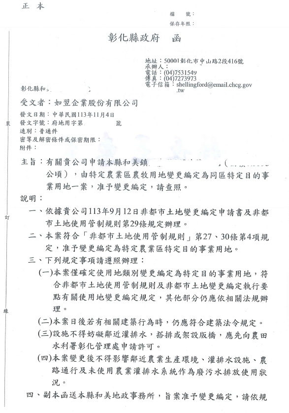 恭喜 如翌企業股份有限公司 變更編定完成(農地變建地)!!!